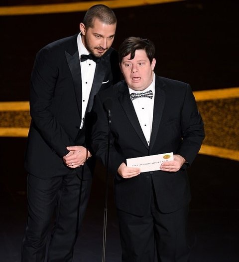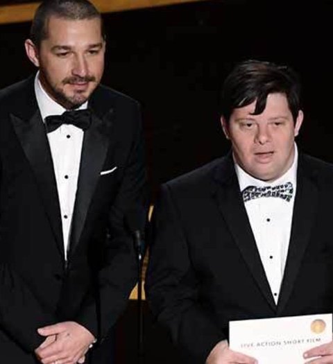 배우 샤이아 라보프와 함께 단편 영화상 시상을 위해