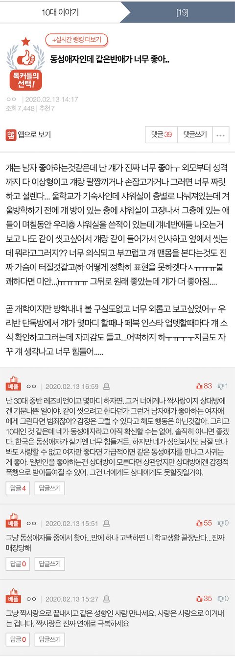 동성애자는 본인이 선택해서 되는게 아니라지만, 나는 동성인 친한 친구처럼 생각했는데 상대는 나에 대한 감정에 그렇지 않을수있다는건 사실 당하는(?)입장에서는 굉장히 소름끼치는 일인것 같음...