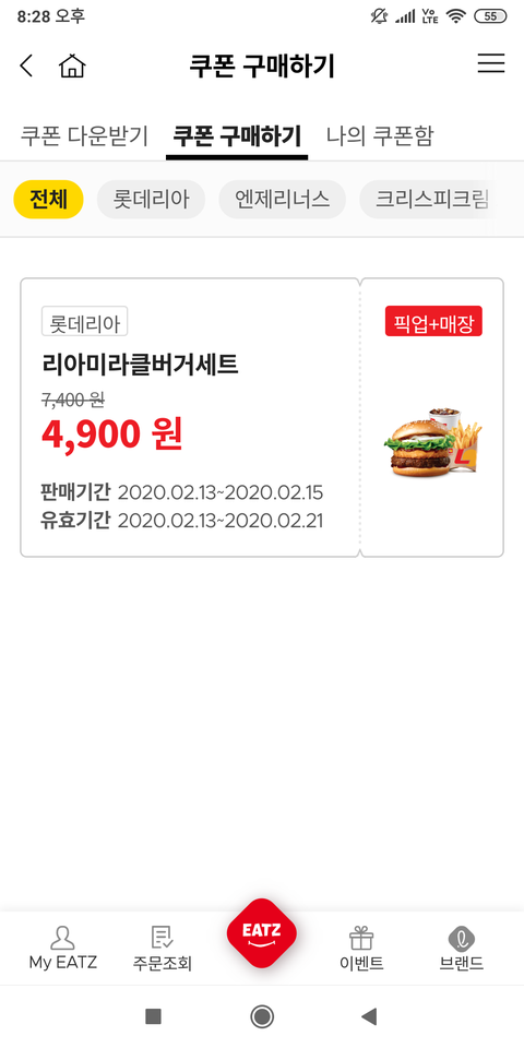 롯데잇츠 앱에서 쿠폰도 구매했음