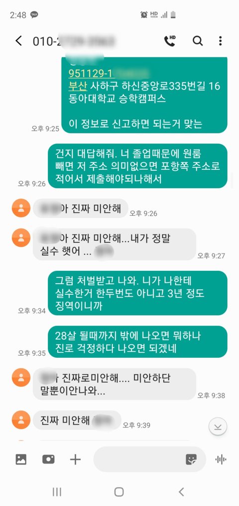 신고 왜 늦게 하셨냐는 분 계신데 가해자가 죽어버리고 싶다고 자해하고 그래서 정말 자살이라도 하면 어쩌나 무서워서 못했습니다...
