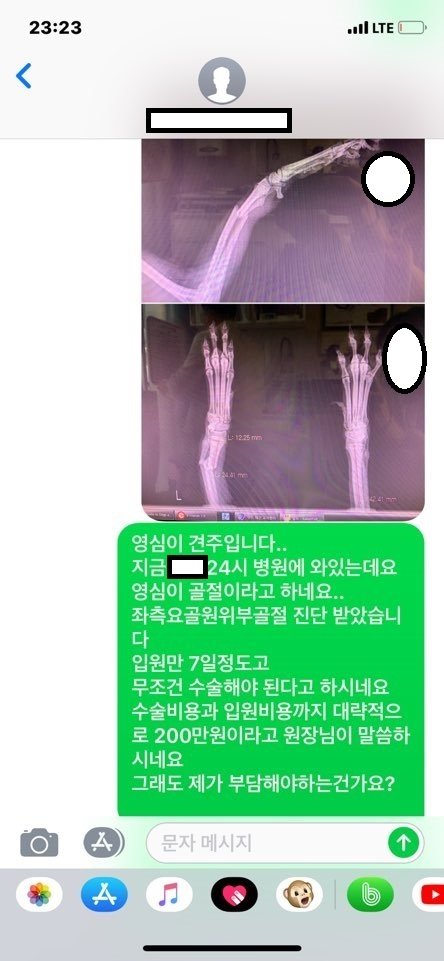 강아지 뼈뿌러지고 치료도 제가 해야하잖아요. 저희도 저희선에서 일 처리하겠습니다.
