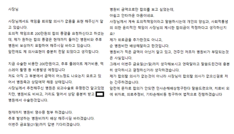 근데 저는 위로금 바라지도 않아요 병원비만 보상해주시길 바래요