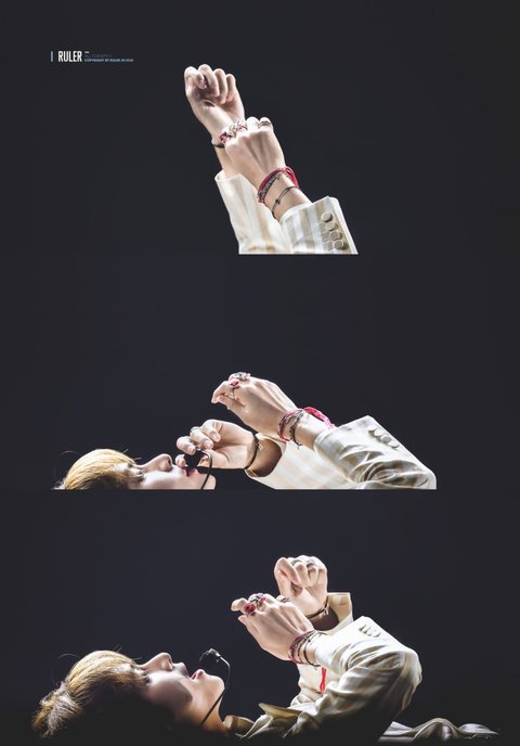 첫번째껀 원래 겉옷이 더 있는데 퍼포먼스로 뜯다가 지민이 한쪽 남준이 두쪽 다 속안의 옷을 뜯어서 그렇구, 두번째껀 들고 다니다 원래 좋아하던 가방으로 돌아감, 세번째껀 아임파인 무대인데 도입부분인데 제이홉과 슈가가 뷔 받치는게 퍼포먼스임 그런데 저장면 나간 후엔 슈가 표정관리 잘함ㅋㅋㅋ