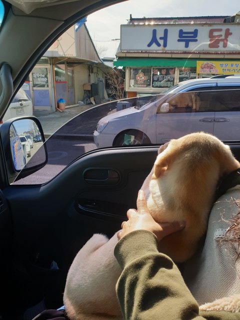 엄마한테 안겨서 세상구경중;;(엄마는 개가 진짜 싫다했는데!!)