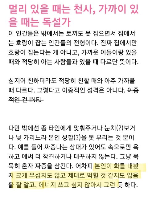 진짜 완벽파악했다 꼭 이상한 추진력을 발휘하는데 다 망하고 뭘 열심히 하는 것처럼 보이는데 실제로는 아무것도 안 하고ㅅㅂ 딱히 밉보일 짓 안 해서 막 미움받고 살진 않고