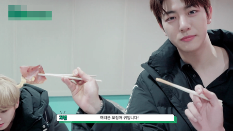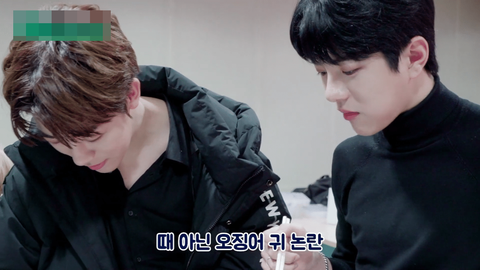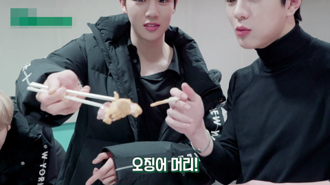 보민이 형에게 오징어 맨 윗부분 권하면서