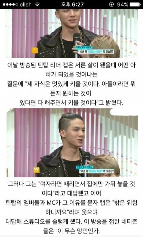 틴탑 8년팠지만 캡은 저 발언 말고도 그냥 리더자질이 안 됨.. 장난아냐 이후 1년 6개월 공백기동안 떡밥도 없이 국내팬들 기다렸음. 물론 이 과정에서 팬덤 박살났지만 그래도 앵간한 홈들, 팬들은 있었는데 컴백하자마자 럽스타 오지게 하고 팬들한테 하는 말인 척 사실은 여친애칭에 사랑주고받기였음^^! 여기서 대거탈덕 일어나고 컴백 망했지. 이거 때문에 팬덤 망한거 다 알면서 몇 달 뒤에 니엘이 같은여자랑 3번 열애설 터졌는데 여친이 팬들 엿멕이기 장인이였음ㅋㅋㅋㅋ 니엘이 팀내 인기멤이였는데 럽스타 오지게 하니까 팬들이 그만 좀 하라고했더니 니엘친구까지 껴서 팬들 악플러취급함. 그리고 뭐 팀 1군이었던 엘조 탈퇴하면서 완전 무너진거지...얘네한테 부은 시간이 너무 아까워서 탈덕부정기만 3년이었는데 탈덕하고 보니 이렇게 부질없는 짓도 없드라. 공식팬클럽 혜택이 뭐였는지 아니? 일정 기간마다 셀카 올리기 였음ㅋㅋㅋㅋ 아이돌이 돈벌이면 셀카 올리는 건 당연한 거 아니냐? 이걸 돈 주고 보래.. 그래놓고 한달쯤 하더니 그것마저 안 하드랑^^ 근데 리더인 캡은 이 모든 상황을 케어하지 않았다...