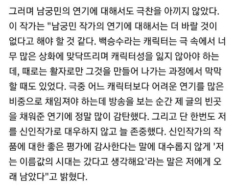 작가 인터뷰에서 남궁민에 대한 언급
