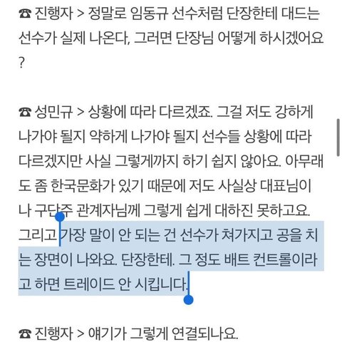 남궁민규(현 롯데자이언츠 단장 성민규) : 그 배트컨트롤이라면 트레이드 ㄴㄴ