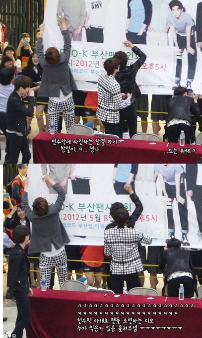경수야 뭐해?ㅋㅋㅋㅋㅋㅋㅋㅋ 애들 싸인하는데 혼자 현수막 너머 팬 보고있음 귀여어ㅠ