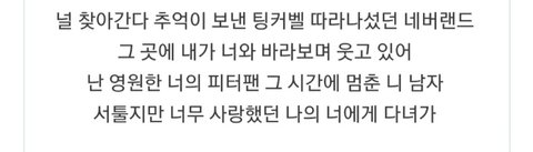 대학 합격하고 놀거 다 놀다 오늘 엔터톡 본진 가사 보고 오랜만에 피터팬 듣고 있는데 왜 이렇게 슬픈겨... 추팔 지리고ㅠㅠㅜ휴류유뉴ㅠㅜㅜㅠㅠㅠㅜ