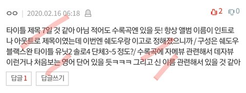 트랙리스트 뜨기 전 이 글에 열린 궁예파티 채점 해왔어