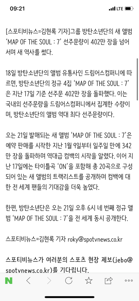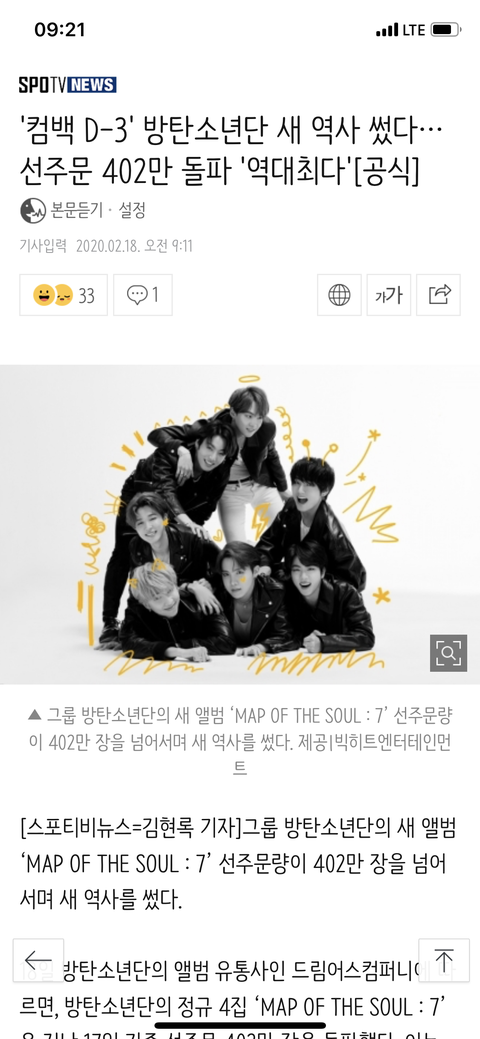 방탄 미친거 아니냐 ㄷㄷ 선주문 402만장