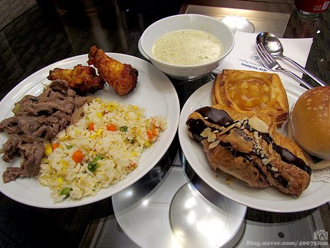 음식의 가짓수는 인천공항 라운지에 비하면 초라한 느낌이 들 정도입니다.