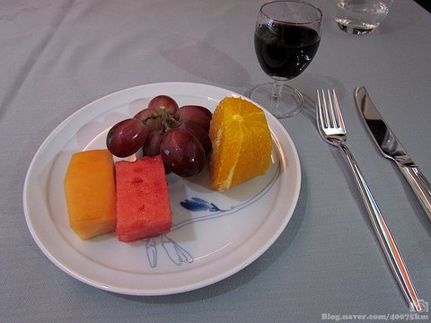 후식으로는 각종 과일이 등장합니다. 이 역시 지상에서의 맛과 크게 다르지 않은 덕에 기내식으로 좋은 메뉴지요.