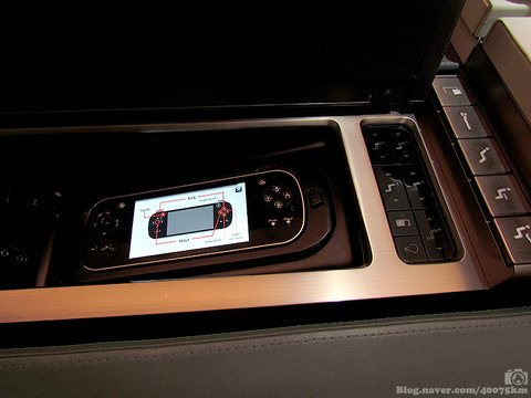 팔걸이 옆에 숨어있는 좌석 제어 버튼 및 화면 제어 콘솔.