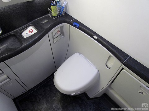 화장실은 비지니스 클래스와 퍼스트 클래스가 공유합니다. 그런데도 상대적으로 사용하는 인원 수가 적어서 그런지 비어있는 시간이 압도적으로 많습니다.