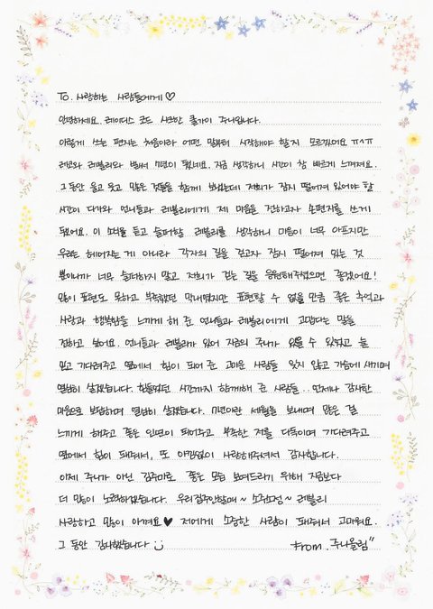 소속사 공식 입장이랑 멤버들 손편지 뜸
