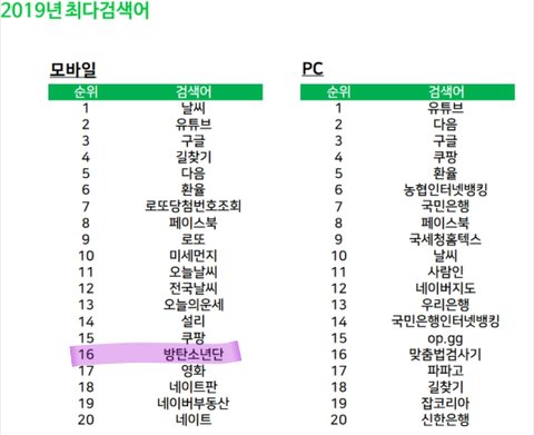 방탄 왜 초록창 실검에 안 오르는줄 앎??