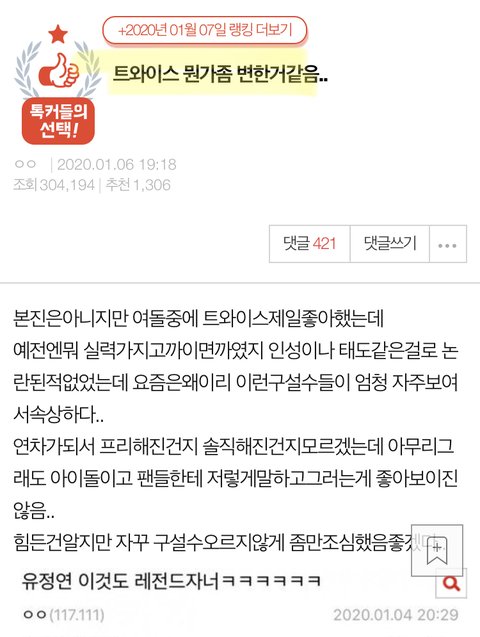 그런데 내가 좋아하는 가수가 요즘 그렇게 욕먹는걸 보니까 너무너무 화가나고 전에는 내가 왜 말리질 않았을까 반성하게 되더라.