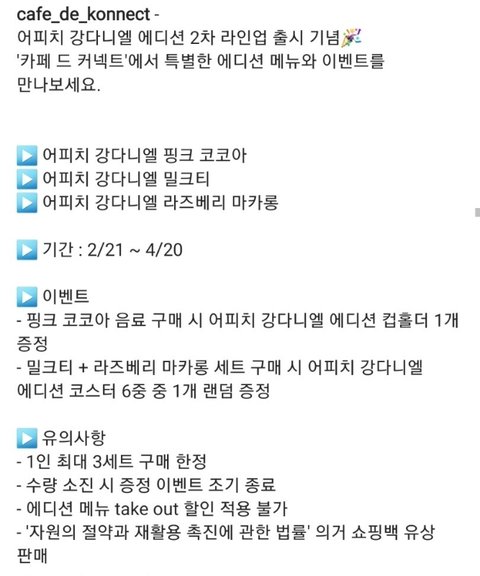 어피치 강다니엘 에디션 2차 라인업 출시기념 메뉴