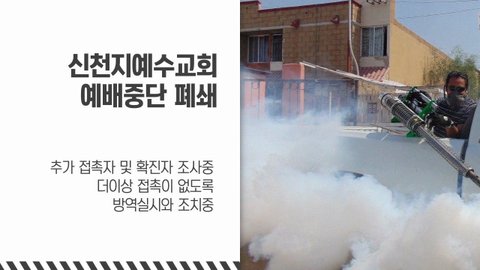 현재 각 지역 보건소를 통해 전국 신천지 교회에 대한 소독방역 요청 후 진행 중에 있으며, 외부활동 자제, 사무실 근무자들의 자택근무도 지침을 내리고 있습니다.