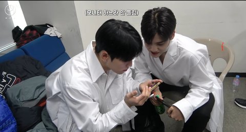 시작은 시계바늘 무대 모니터 하는 국헌이와 유빈이로 ㅇㅇ