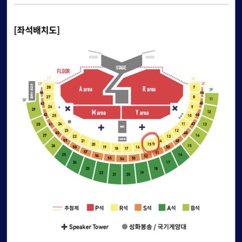 1층 15구역인데 스피커타워 시야 많이 가릴까 ㅠㅠㅠㅠㅠㅠㅠ 빨간색으로 표시 된 곳이 아마 내 자리... 시야 망한 것 같아ㅠㅠ