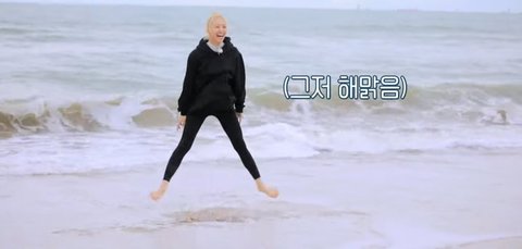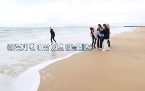 유나는 자기가 제안한 바다 입수 본인이 걸려서 방방 뛰다가