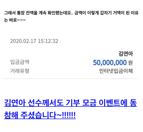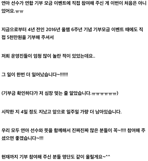 2016년 올챔 6주년 기부모금 이벤트 때에도 직접 5천만원을 기부한 적 있다고 함