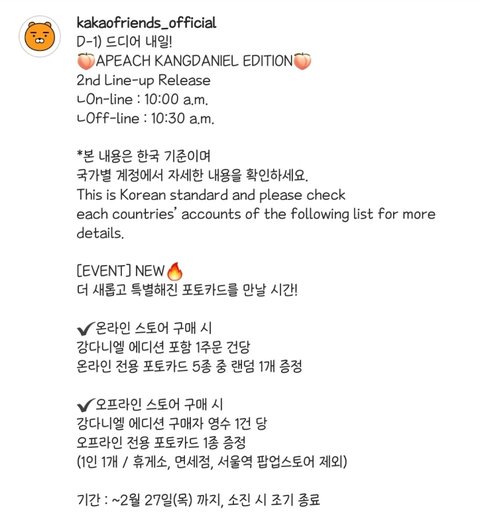 어피치 강다니엘 에디션 2차 라인업