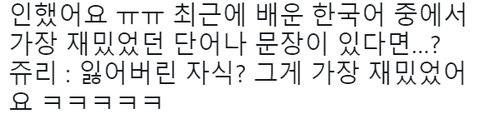 뮤뱅에서 말해준 최근에 배운 한국어ㅋㅋ