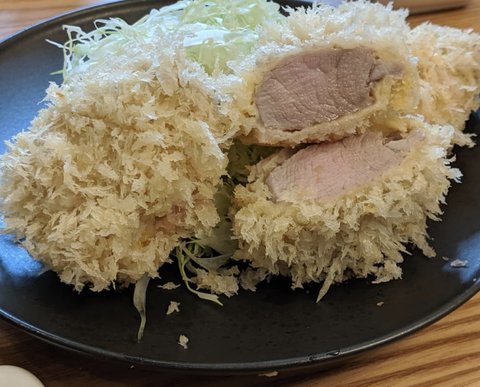 참고로 분홍빛을 내는 돼지고기는 안 익은게 아니고, 돈카츠가게에서 유행이기도 한데, 무균돼지고기를 사용하기에 먹어도 무방하다고 해요