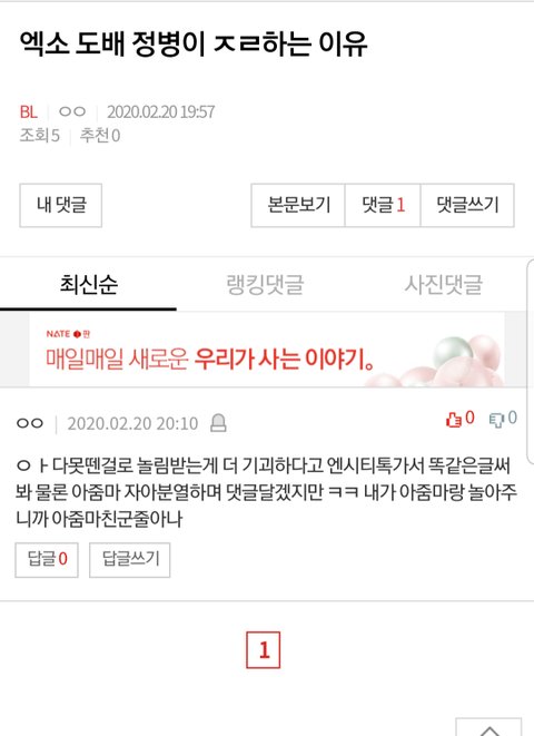 상처받은 엑소도배 정병의 열폭질...ㅠㅠ