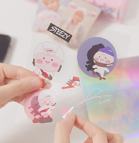 포토앨범이랑 응원봉데코스티커 피규어 그리고 파우치랑 키링 다 귀여움