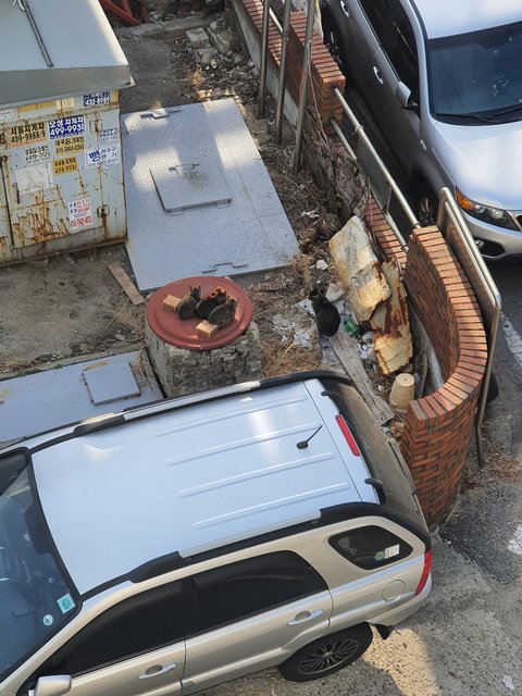 *사진 첨부해 봅니다.. 이쪽 말고도 옆쪽에는 아옹이 급식소도 하나 사서 차려놨어요..