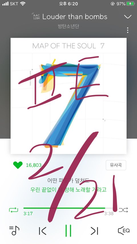 지금은 이거 들었지만 쉐도 진짜 추가된 부분 듣고 ㄴ눈물 주륵주륵 흘렸다ㅠㅠㅠㅠ 이번 앨범 역대급 망할듯!!!