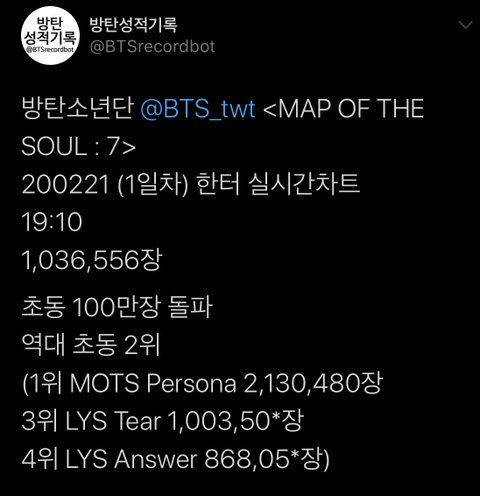 초동 백만장 돌파