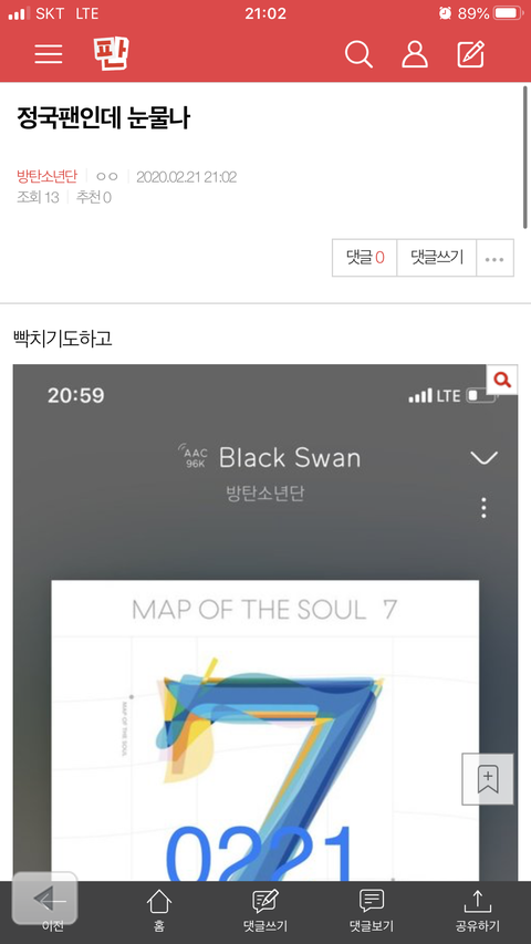 밑글” 정국이 팬인데”여기서 봐(인증 훔쳤다)+ 댓추가