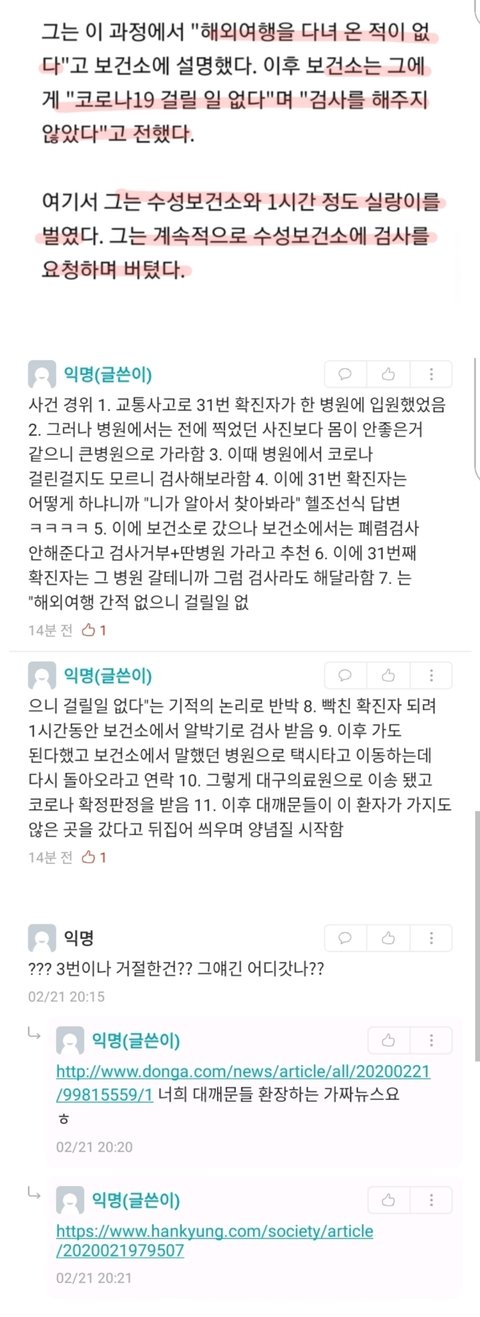 마녀사냥ㅉ 3번확진자한텐 별말 안하더니 ㅋㅋ 이 모든게 다 3번확진자탓인데 어딜가든 31번욕하고 욕수위도 3번 보다높음