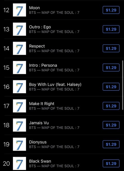 예....뭐.... 멜론 아니고 아이튠즈 미국차트 입니다 걍 1-20까지 다 먹어버린 방탄 클라쓰..... 빌보드 핫백 순위 기대된다!!