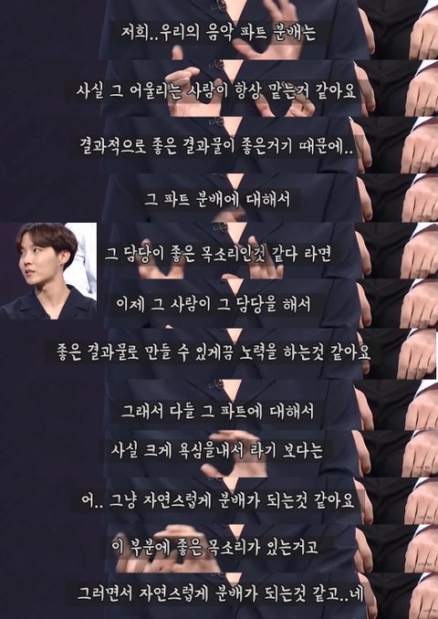 지민 정국이 곡에 잘어울리는 것도 알겠고 이 곡의 랩이 적은 것도 알겠는데 그렇다치면 다른 보컬라인은? 실력때문이라고 하기에는 정국빼고 다 비슷한데 다른 멤버들이 끼가 없는 것도 아니고