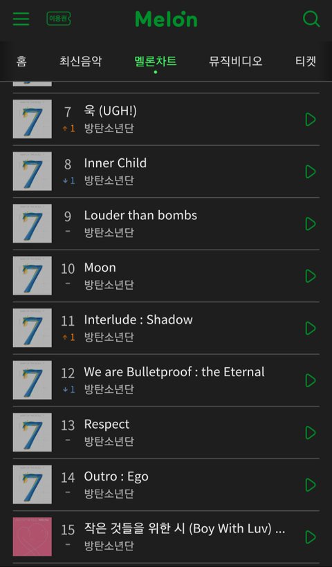 이렇게 완벽한 전곡 차트인은 진짜 첨봐!!!
