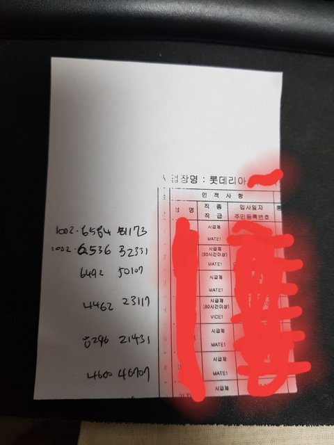 우리 알바분들의 이름과 주민번호 등등이 다 나와있네요 ㅠㅠ