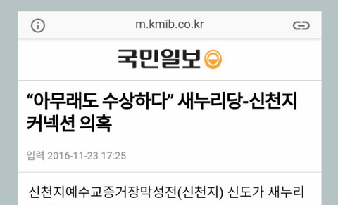 *현 미래통합당의 이전 당명인 새누리당의 새누리는 한자로 바꾸면 신천지임.