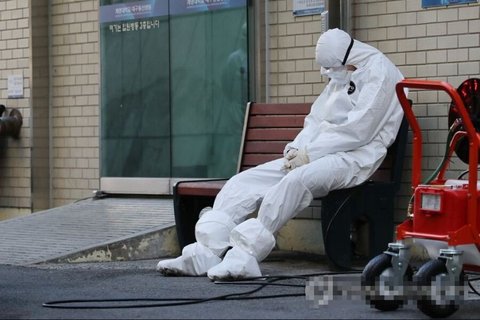 잠시 쉬는 코로나 의료진