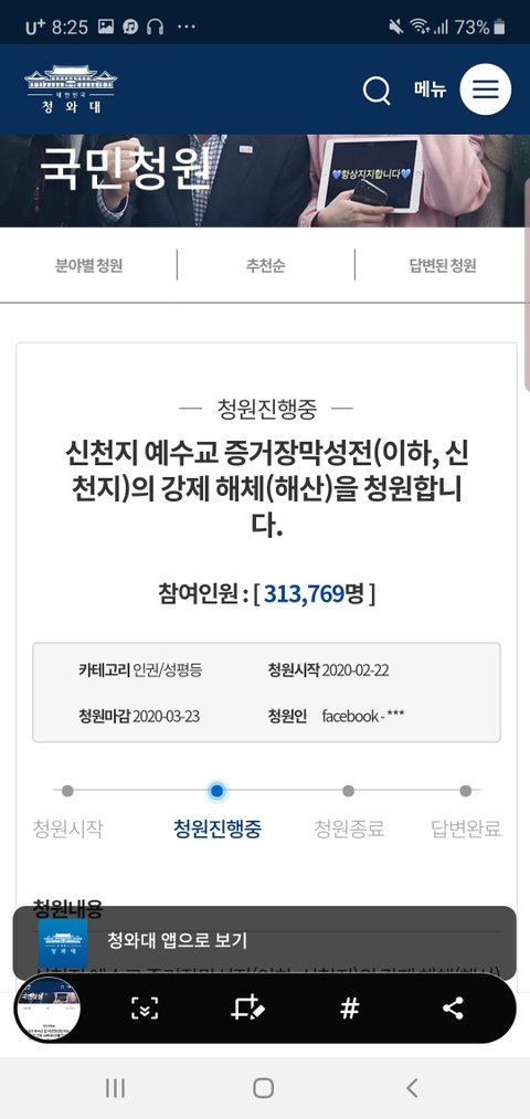 신천지 강제해체 국민청원 링크 참여 고고