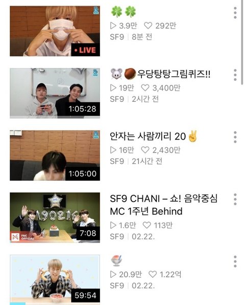 이틀에 5번 브이앱 하는 아이돌 SF9(22~23일) 그리고 방금 또 하나 12시 35분쯤 브이앱 올라옴 (24일) +참고로 공카 게시물은 오늘만 6개 올라갔다고 함