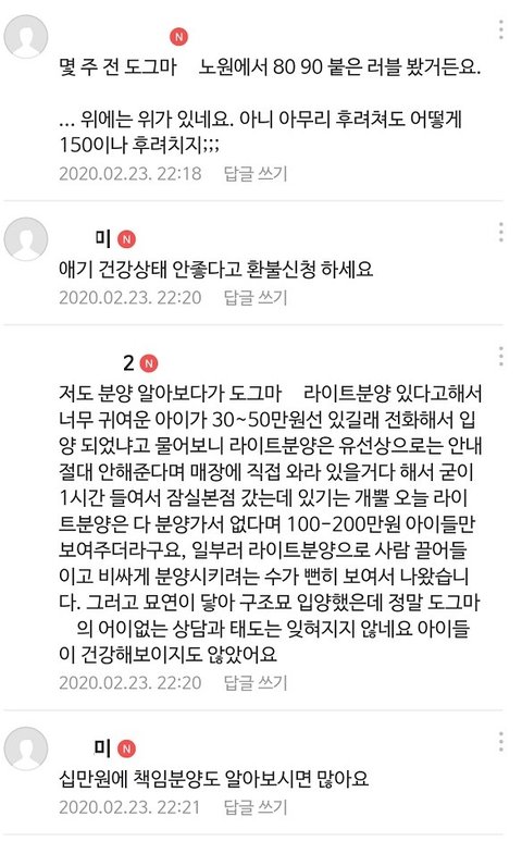 제가 지금까지 한번도 애완동물을 키워본적도 없고 일반분양 받아서 키울 생각도 없었기 때문에 알아보지를 않아서 요즘 분양가격은 다 이렇게 백만원 넘는줄 알았어요
