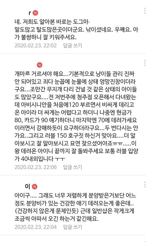 저처럼 호구짓 하지 마시고, 인터넷에 충분히 알아본 다음 유기묘 입양 어플을 쓰시는게 좋을거 같아요
